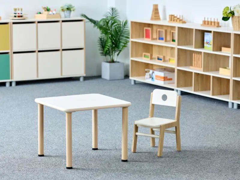 Conçu pour les environnements éducatifs, ce plateau carré de 60 x 60 cm est parfait pour les activités des enfants en garderie ou à l’école. Son design simple et robuste s’adapte à tous les environnements, pour encourager le travail en groupe, le bricolage et le jeu libre.