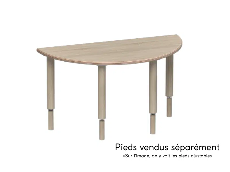 Ce plateau de table semi-circulaire de 120 x 60 cm est parfait pour favoriser l’interaction et la collaboration entre enfants. Sa forme unique permet de créer des espaces modulables, idéaux pour le travail en groupe ou les activités en cercle, tout en offrant à chaque enfant un espace confortable et accessible.