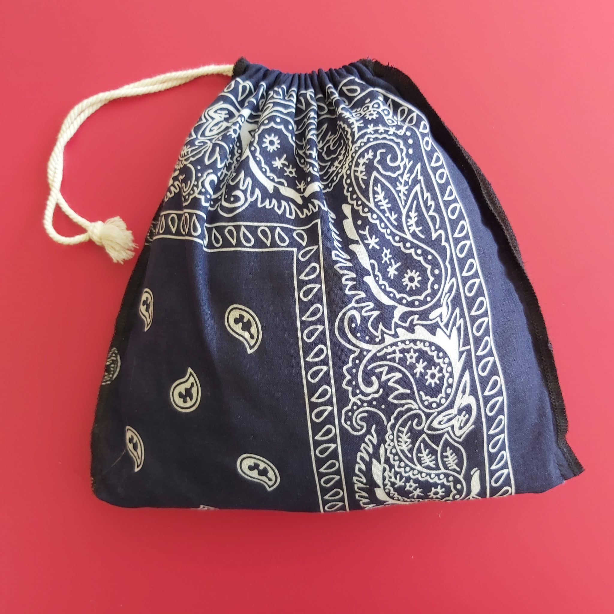 Pochon Bandana idéal pour y ranger ses petites affaires ! Dim : 24 x 23 cm. Fermeture lien coulissant.