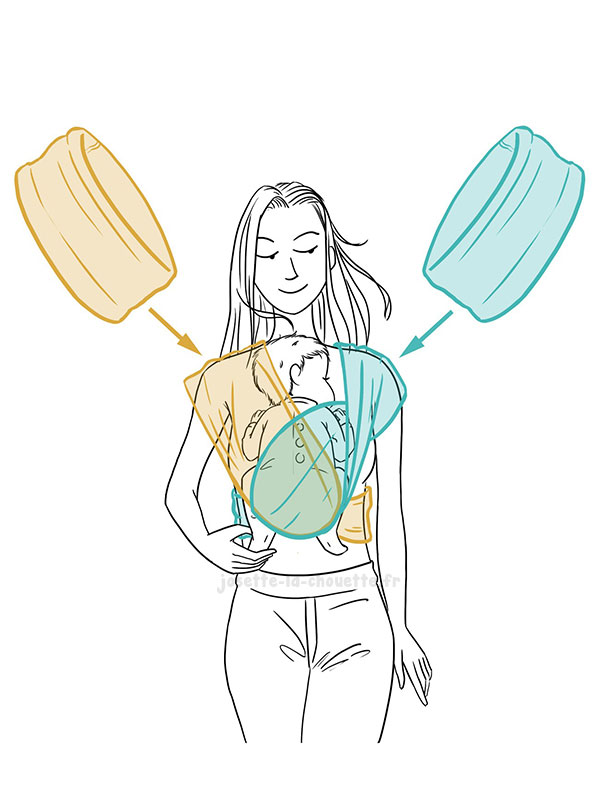 Enfilez les 2 bandeaux en diagonale sur votre buste pour un portage réparti sur vos 2 épaules. Vous vous régalerez et votre bébé aussi avec ce porte-bébé doubles bandeaux ! Il vous accompagnera partout où vous avez besoin pour :