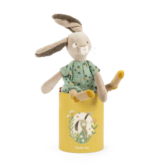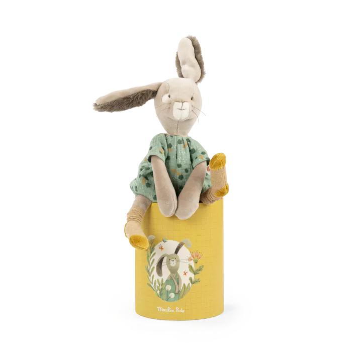 Poupée lapin sauge & sa boîte | Trois petits lapins