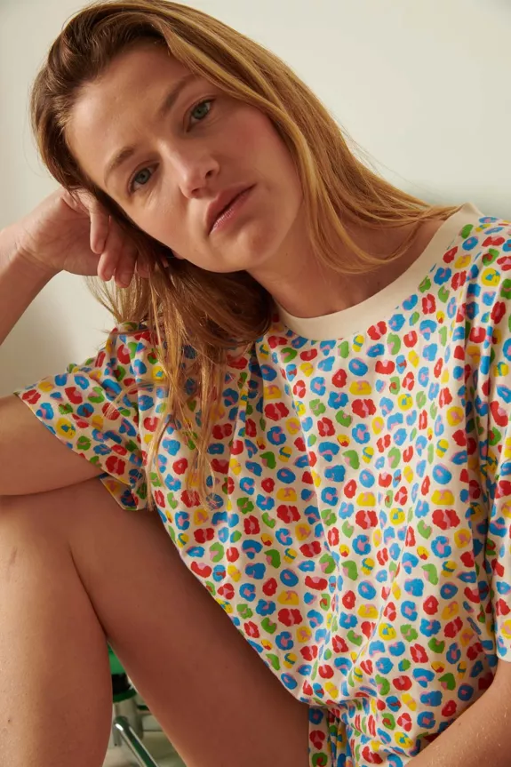 Fini les nuisettes inconfortables et les chemises de nuit démodées ! On a imaginé le pyjama parfait : un t-shirt oversize bien coupé, un short juste comme il faut, et du coton bio ultra doux. Son imprimé léopard multicolore fait vibrer la collection Paraíso, inspirée de l’énergie de Rio. Un souffle de liberté, de couleurs et d’assurance à enfiler sans modération. Chez We Are Jolies, on ne cache pas, on célèbre ! 💛