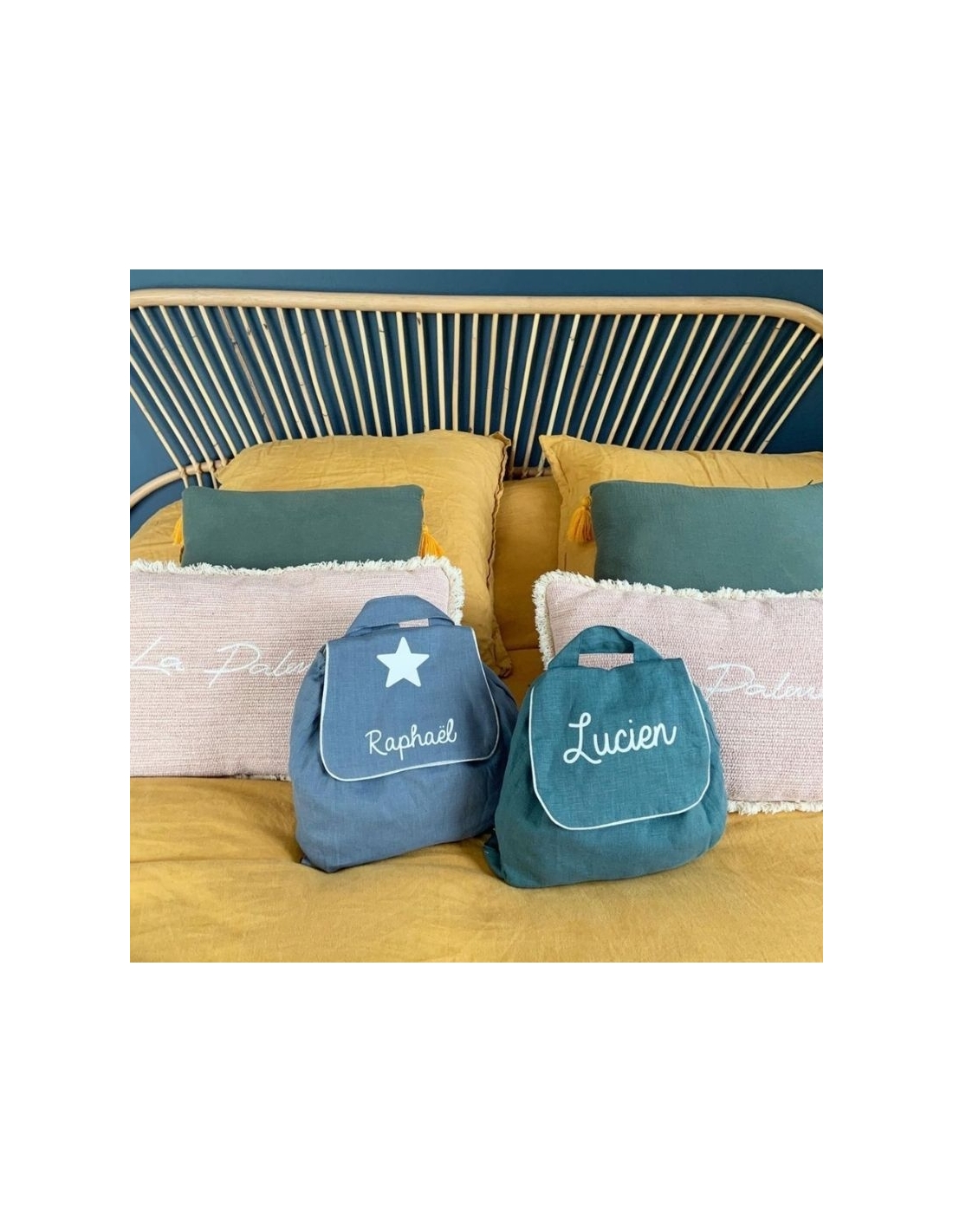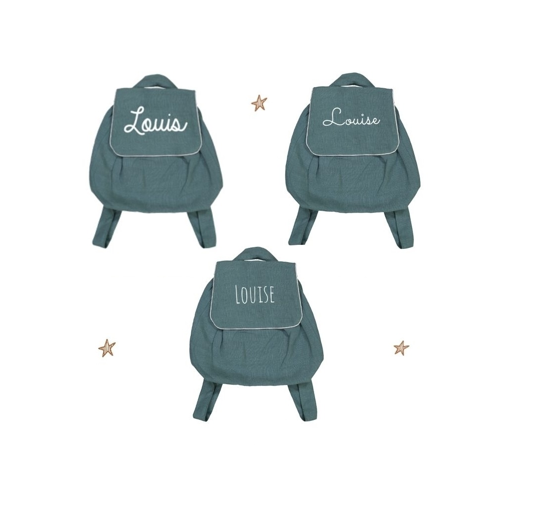 Un très joli sac à dos personnalisable dans lequel on peut transporter un goûter, des affaires de rechanges, une tétine ou un doudou. Pour choisir votre personnalisation, faites défiler les photos jusqu’à trouver l’image avec les couleurs et les polices d’écritures disponibles. Juste en dessous, choisissez le numéro correspondant à la couleur et à l’écriture choisies.