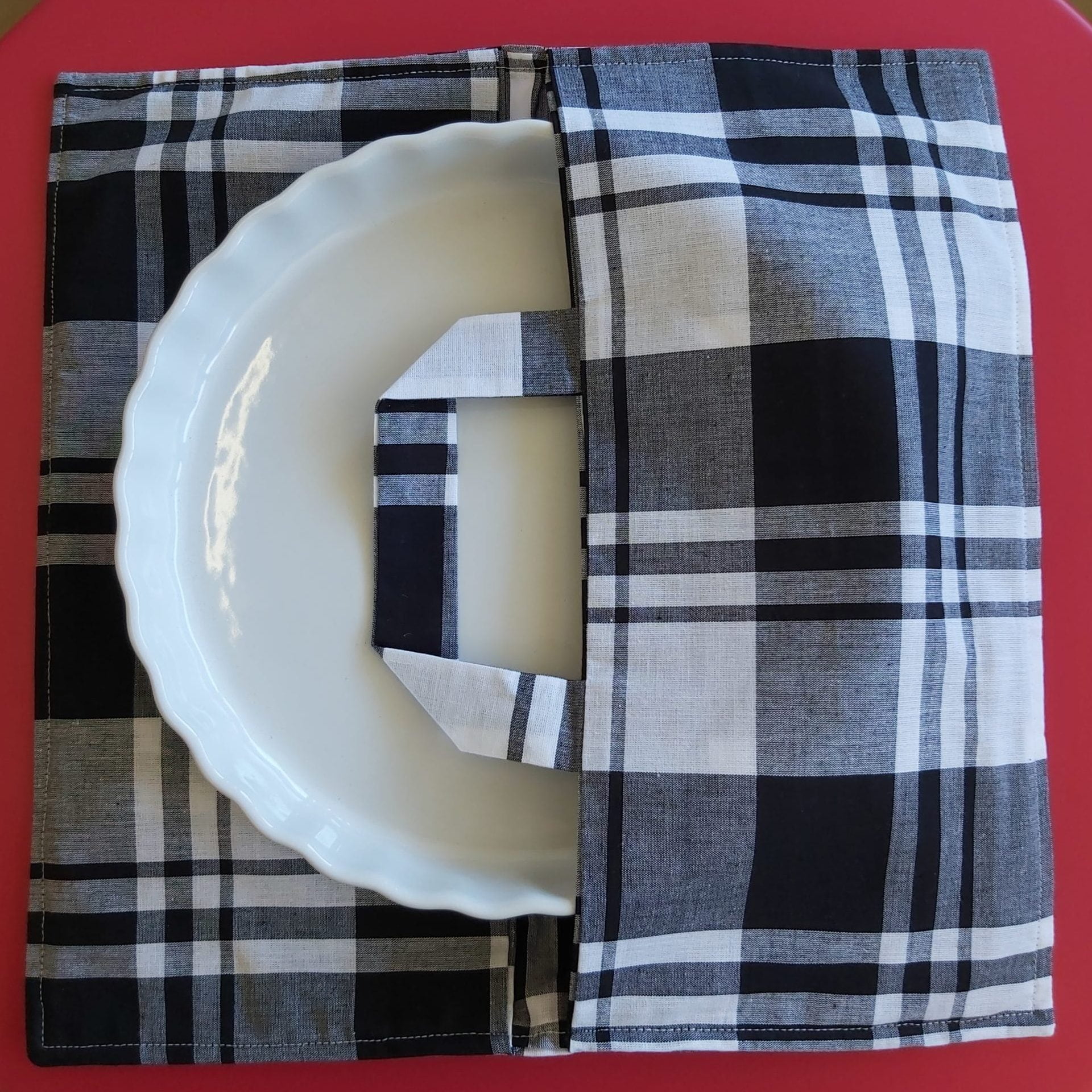 Le sac à tartes vous permettra de transporter tartes, quiches ou gâteaux en pique-nique ou chez vos amis ! Utile et très pratique dans la cuisine. Madras 100% coton. Dim : 40x40cm. Lavage 30°. Pas de sèche linge.