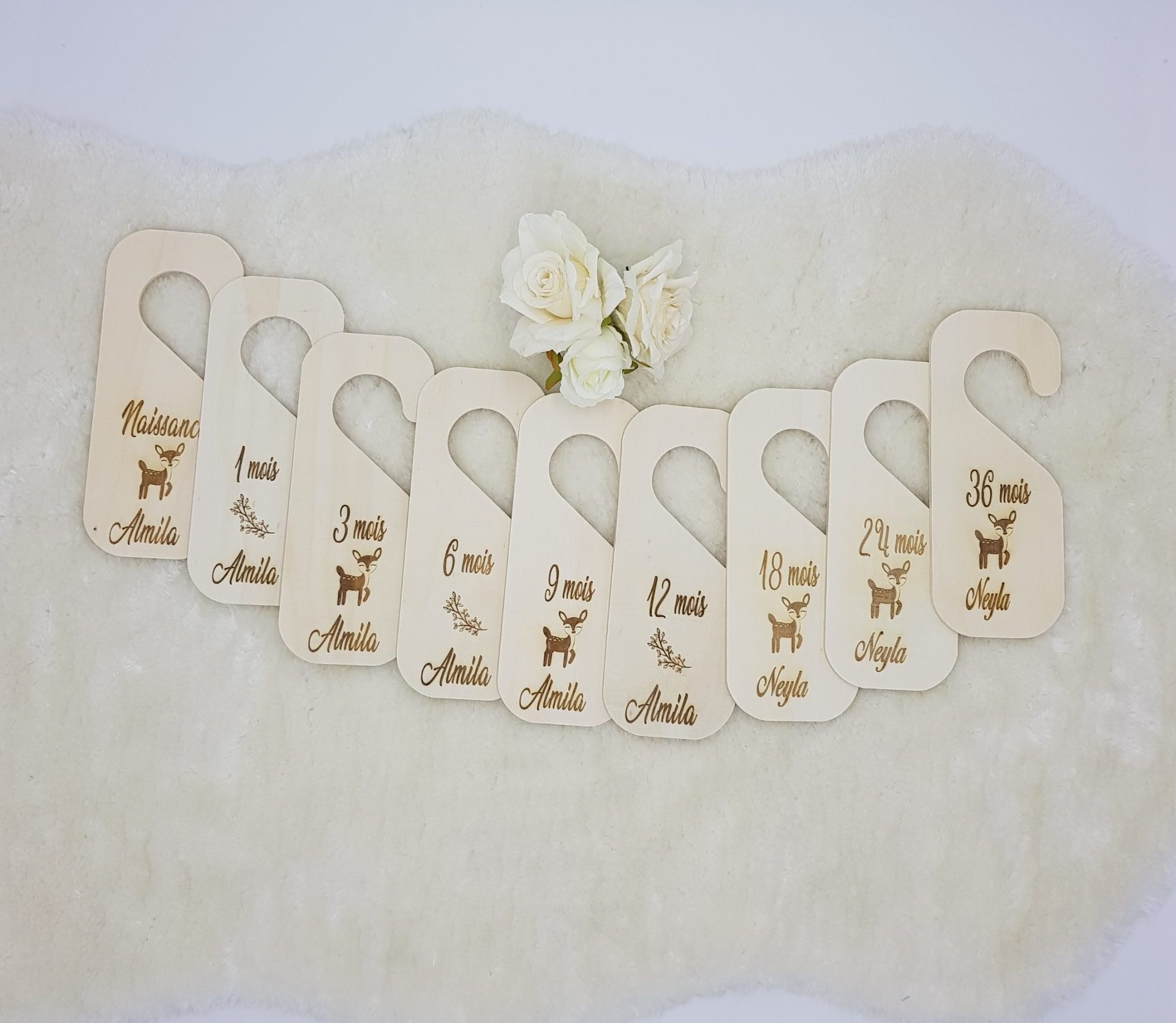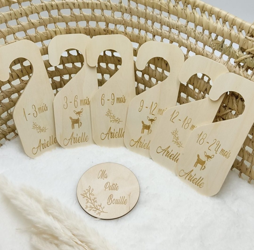 Un séparateur de penderie en bois pour sublimer le dressing de votre petite bouille. Lot de 6 composé de: 1-3 mois / 3-6 mois / 6-9 mois / 9-12 mois / 12-18 mois / 18-24 mois