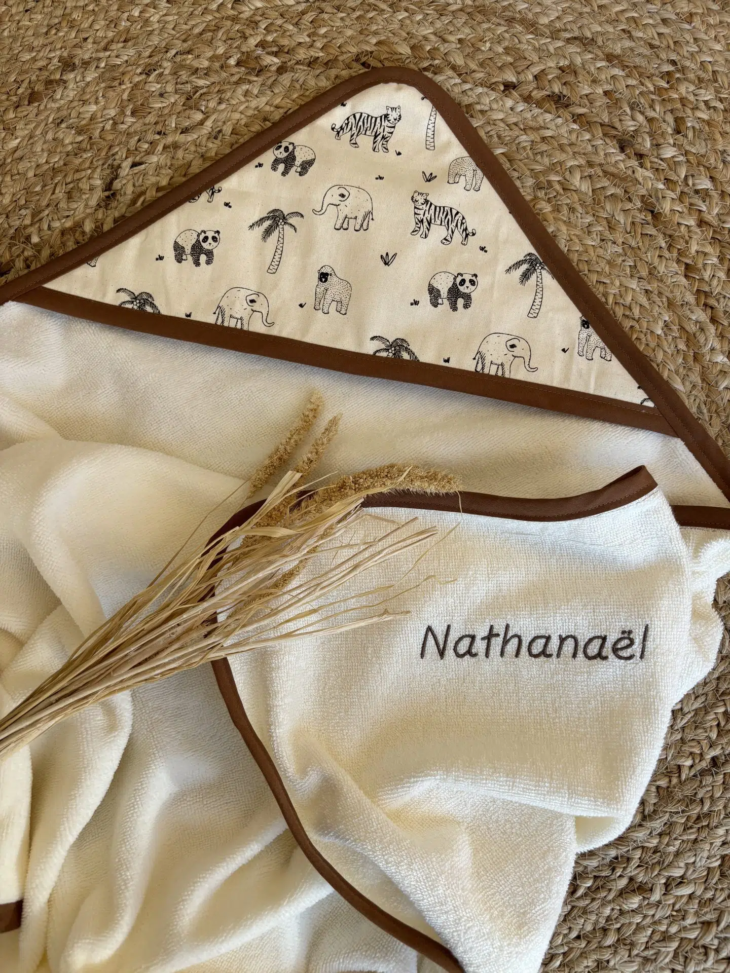 Cette cape de bain toute douce enveloppera bébé dès sa sortie du bain. Taille de la naissance à 18 mois. Vous pouvez entièrement la personnaliser en choisissant l’association de tissus et l’option broderie pour le prénom. N’hésitez pas à me contacter pour toute demande spécifique. Retrouvez tous les tissus disponibles dans la Tissuthèque.