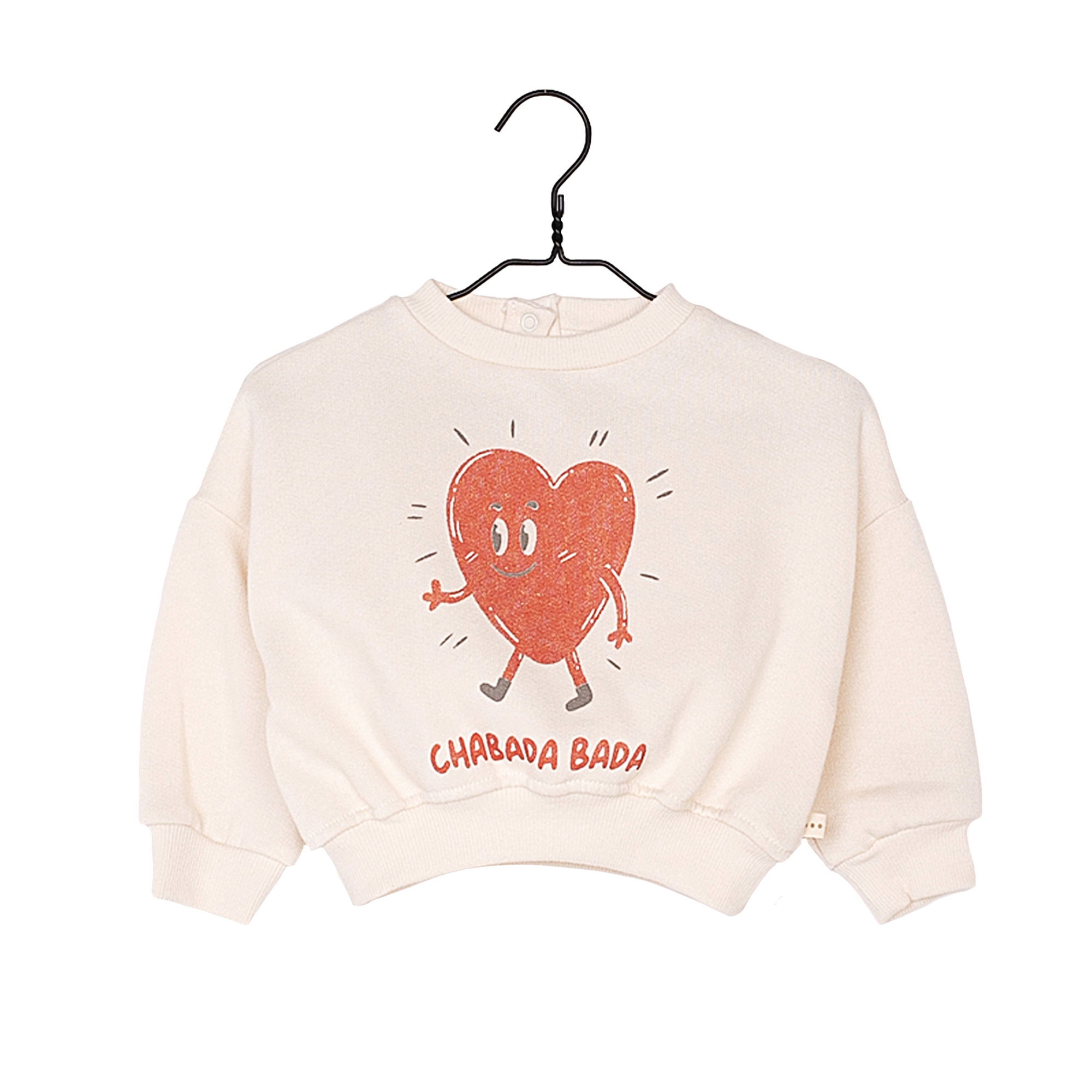 Les sweats et les enfants… Voilà une grande histoire d’amour qui dure encore et toujours. Découvrez notre sweat Soan à la forme ronde et cosy. Pour aider vos petites pousses à bien grandir, nous avons rajouté des boutons pressions à l’encolure aux tailles 6 mois à 4 ans. Mr Love est le compagnon idéal pour déclarer son amour aux gens concerné, il chante CHABADA BADA à longueur de journée. Loin d’être plein de chichis il plaît autant aux petits cœurs, garçons et filles.