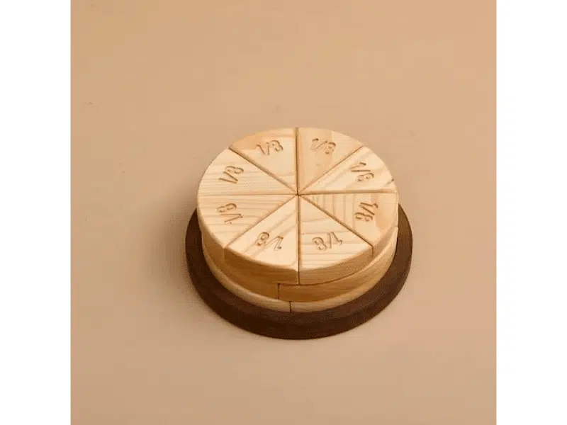Avec cette tarte des fractions15 de Oyuncak House, travaillez les fractions et leurs équivalences. Et pourquoi ne pas ajouter la tarte au coin symbolique?