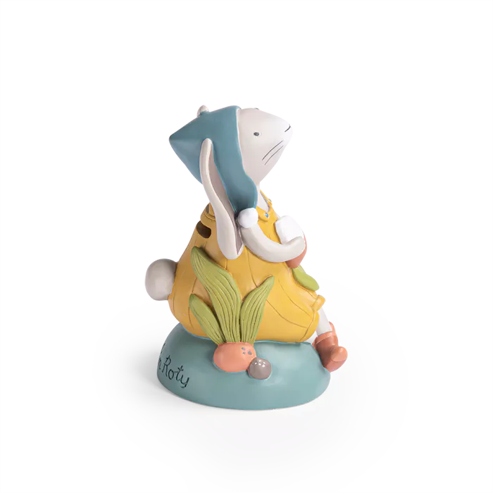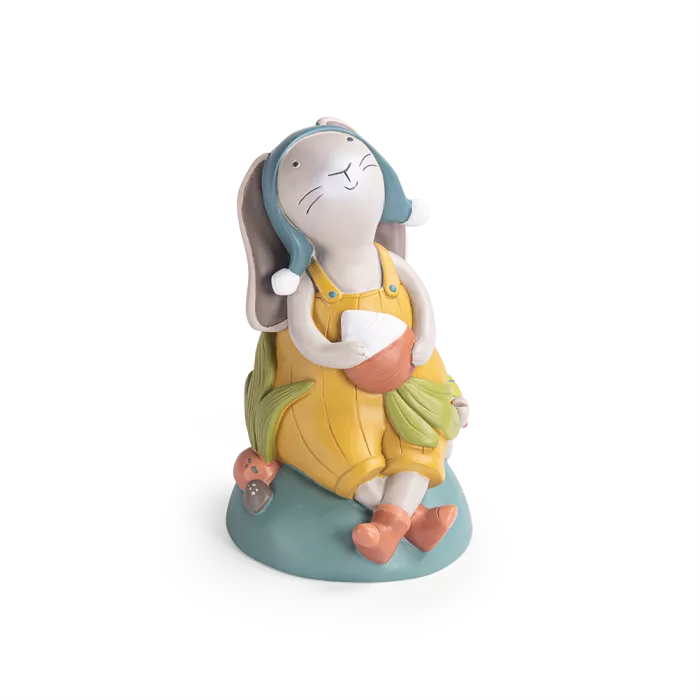 Tirelire en résine à l’effigie d’un petit lapin, prêt à déguster le radis qu’il tient dans les mains! Il gardera précieusement tous les petits trésors qu’on lui confie. Un joli accessoire déco qui trouvera aisément sa place dans la chambre.