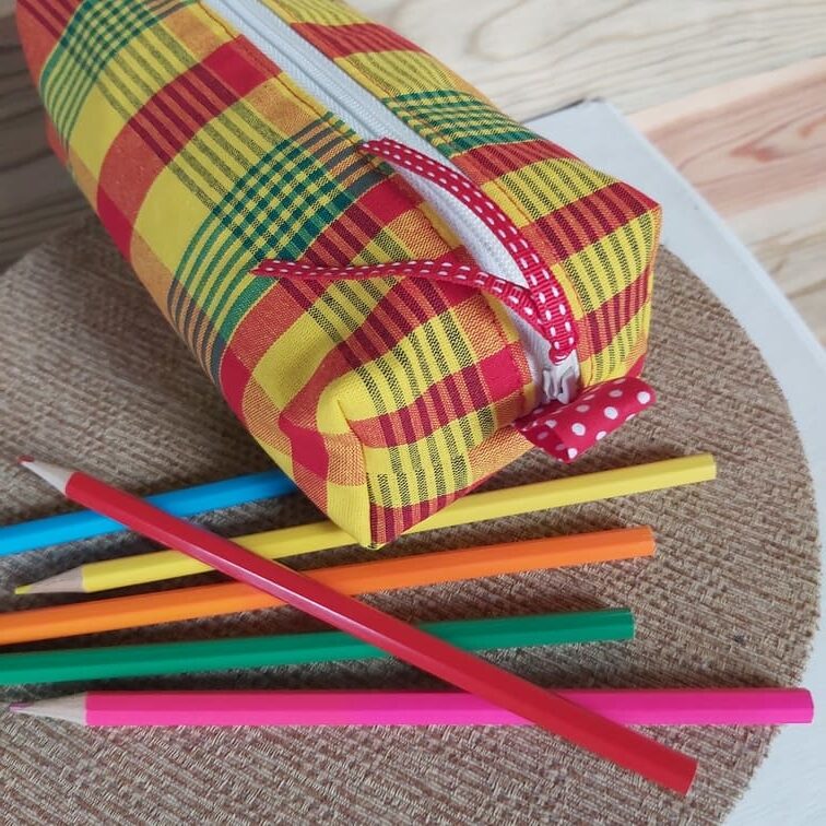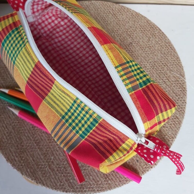 Cette jolie trousse écolier accompagnera à merveille votre enfant sur les bancs de l’école! Elle est assez grande pour y ranger les fournitures nécessaires. Les deux poignées aux extrémités de la fermeture éclair permettent un ouverture et fermeture facile. Réalisée avec du tissu madras et doublée avec le vichy assorti. Dimensions : 18 cm x 9 cm Profondeur 5 cm. Lavable en machine 30° ou à la main. Pas de sèche linge.