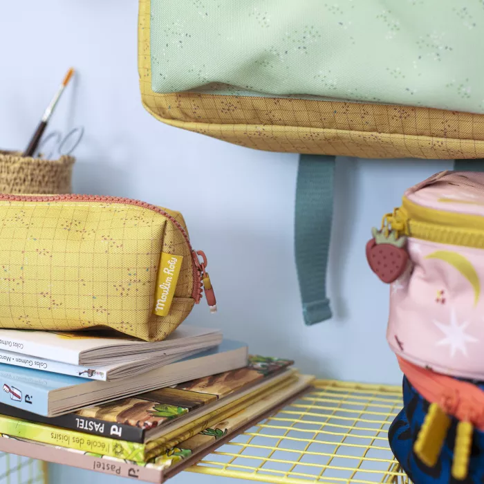 La trousse Trois petits lapins est idéale pour l’école. Assez grande pour y mettre ses crayons et feutres préférés, elle se glisse parfaitement dans le sac à dos de la même collection.