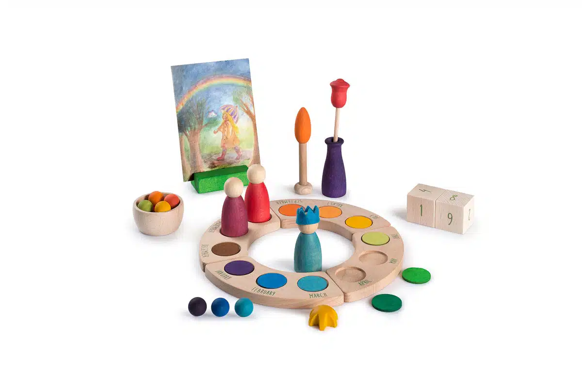 Aujourd’hui est votre jour! L’ensemble Your Day comprend de belles pièces pour célébrer : une bougie, une étoile, une couronne, de la décoration de fête…. ce qui fait de lui l’ensemble parfait et peut être combiné avec le Calendrier Perpétuel en bois avec 12 personnages (en français) et aide à comprendre le concept abstrait du temps. L’ensemble Your Day est un incontournable pour célébrer les fêtes, les anniversaires ainsi que les rituels familiaux. Les pièces peuvent être utilisées comme matériel de construction, pour décorer et ajouter une touche joyeuse aux diverses créations des enfants! Les différentes couleurs des pièces invitent au tri et aux associations. Il contient 31 pièces de formes, tailles, couleurs et matériaux différents (bois et feutre). 3 ans et +